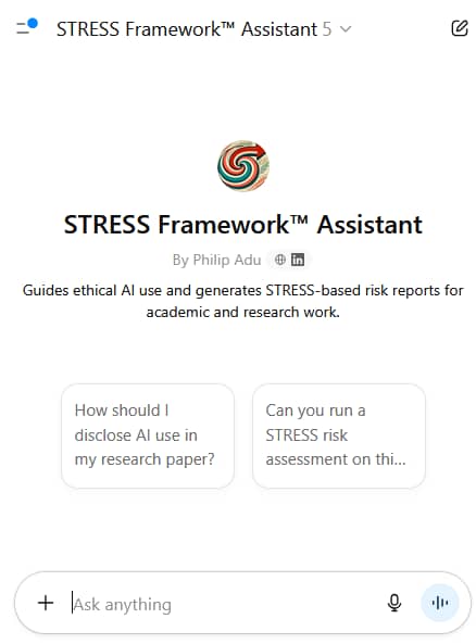 I help researchers and professionals evaluate, document, and communicate responsible AI use through the six STRESS pillars — Sensitivity, Transparency, Responsibility, Ethics, Skepticism, and Security.